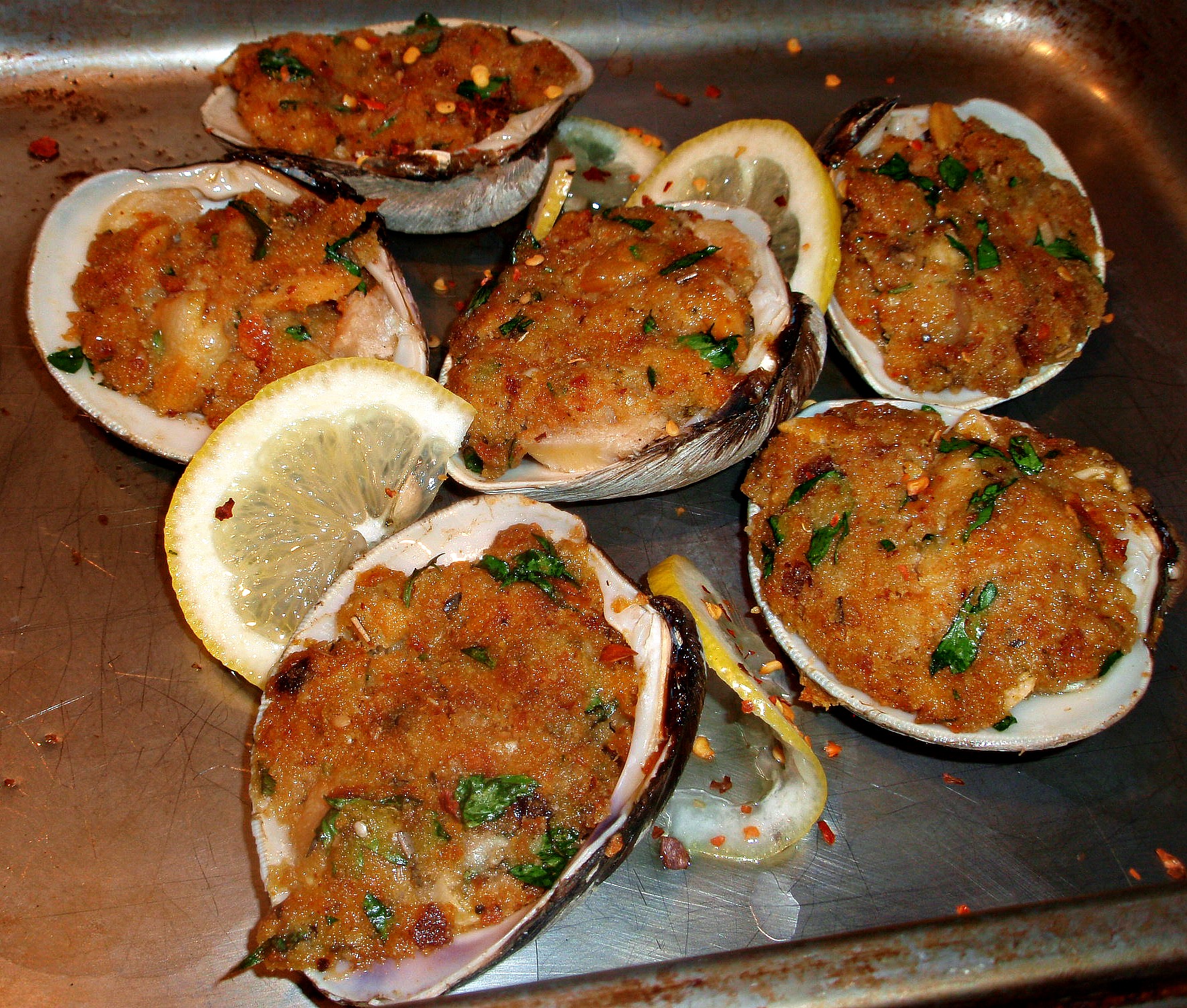 Chouriço Stuffed Clams are a New England style seafood dish which adds Portuguese style flavors like chouriço sausage. Adding chouriço, which is a signature and traditional Portuguese style pork sausage, to the stuffed clams, adds a rich savory flavor and a spicy kick. This dish is a simple and easy Portuguese variation on eating New England style baked stuff clams that is perfect for the beginning of the fall.
